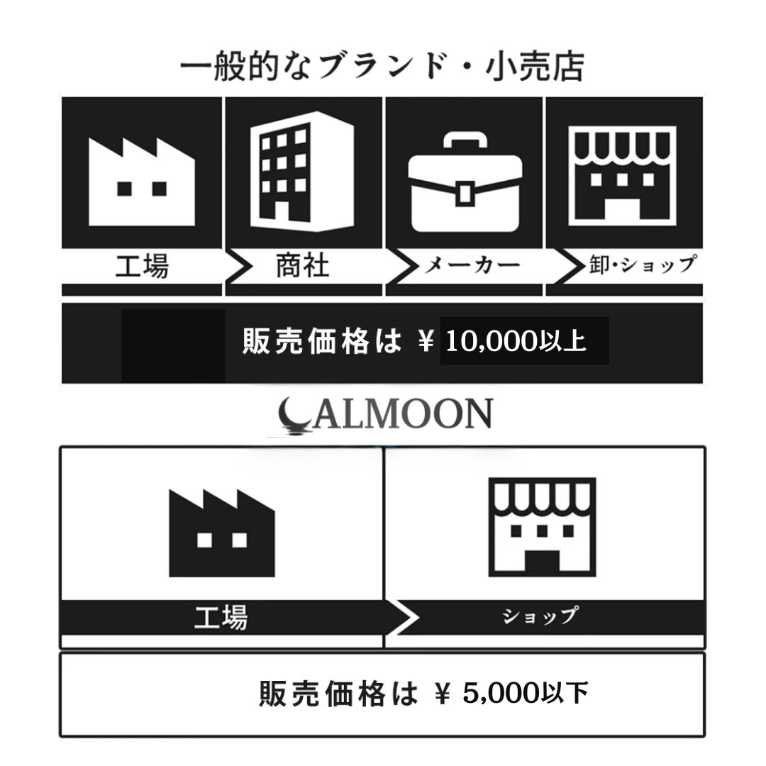 一見、矛盾するこの2点を両立するために、私たちは「企画・開発→販売」を自社で行い、中間マージンを可能な限りカットすることで、実現することができました。