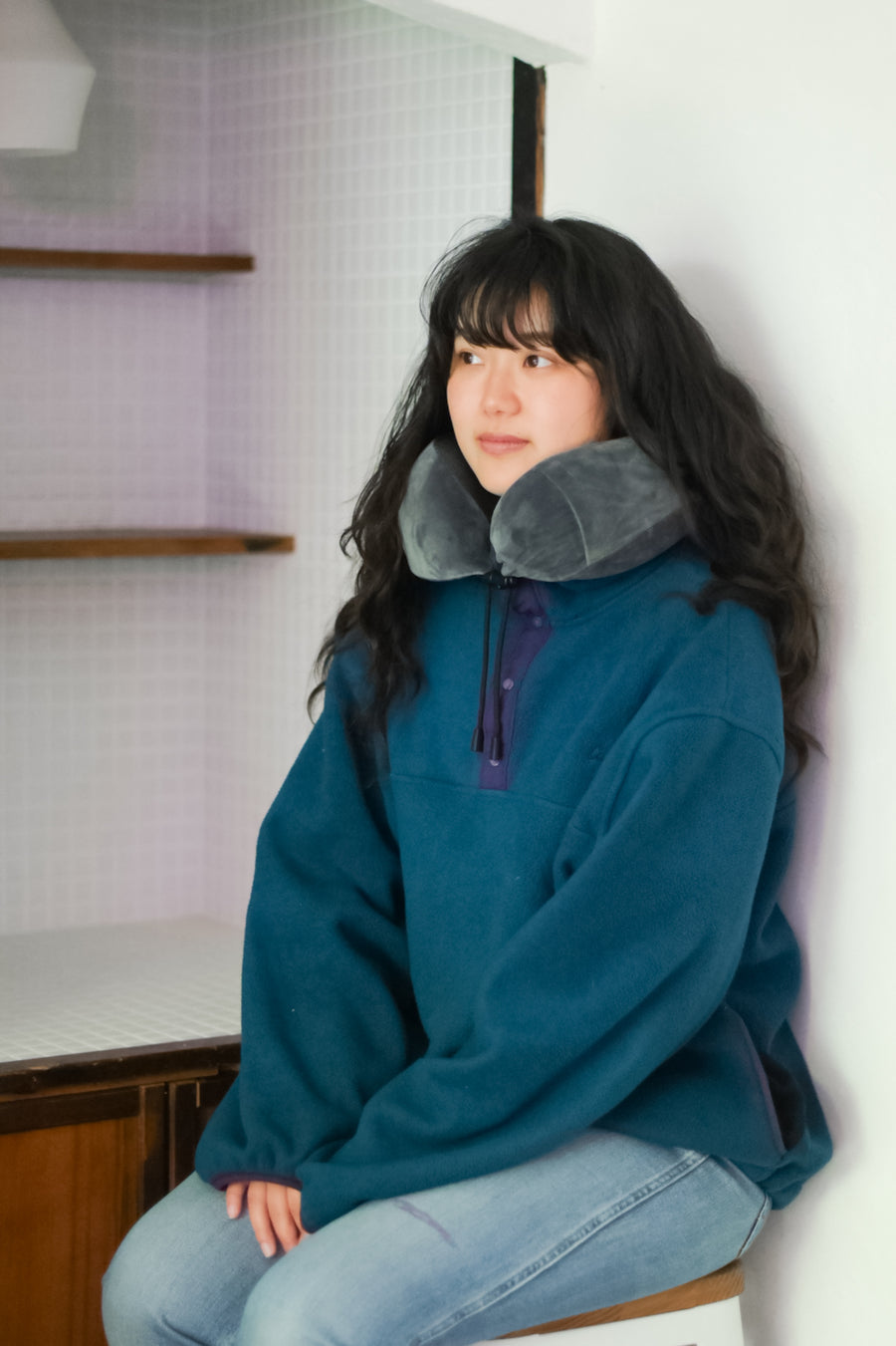 飛行機、長距離バス、車中泊など、様々なシーンで活躍するトラベルネックピロー。